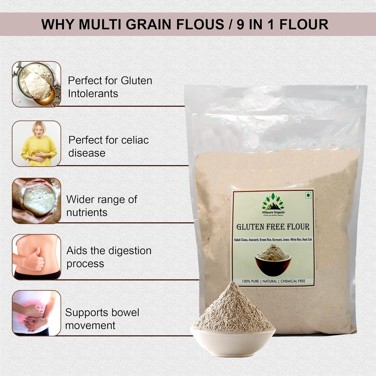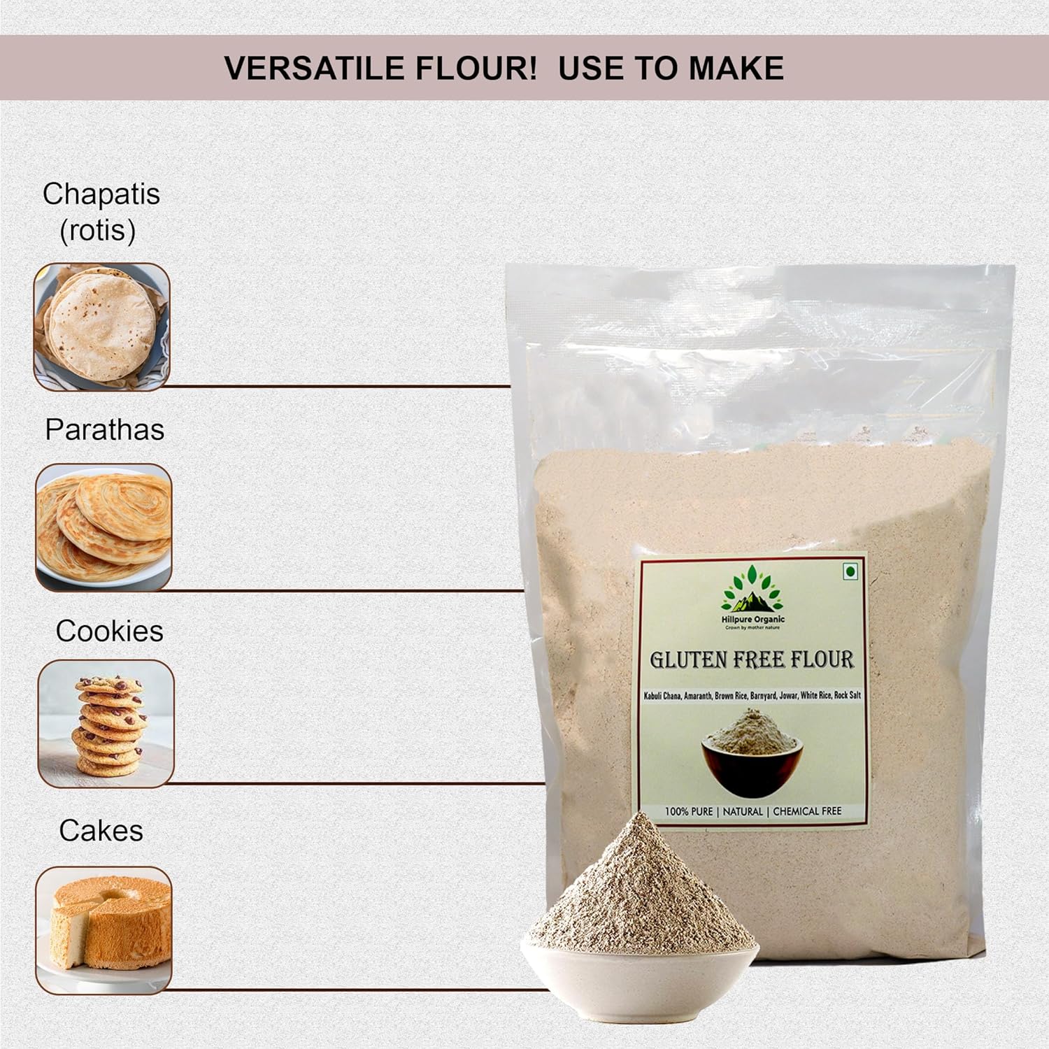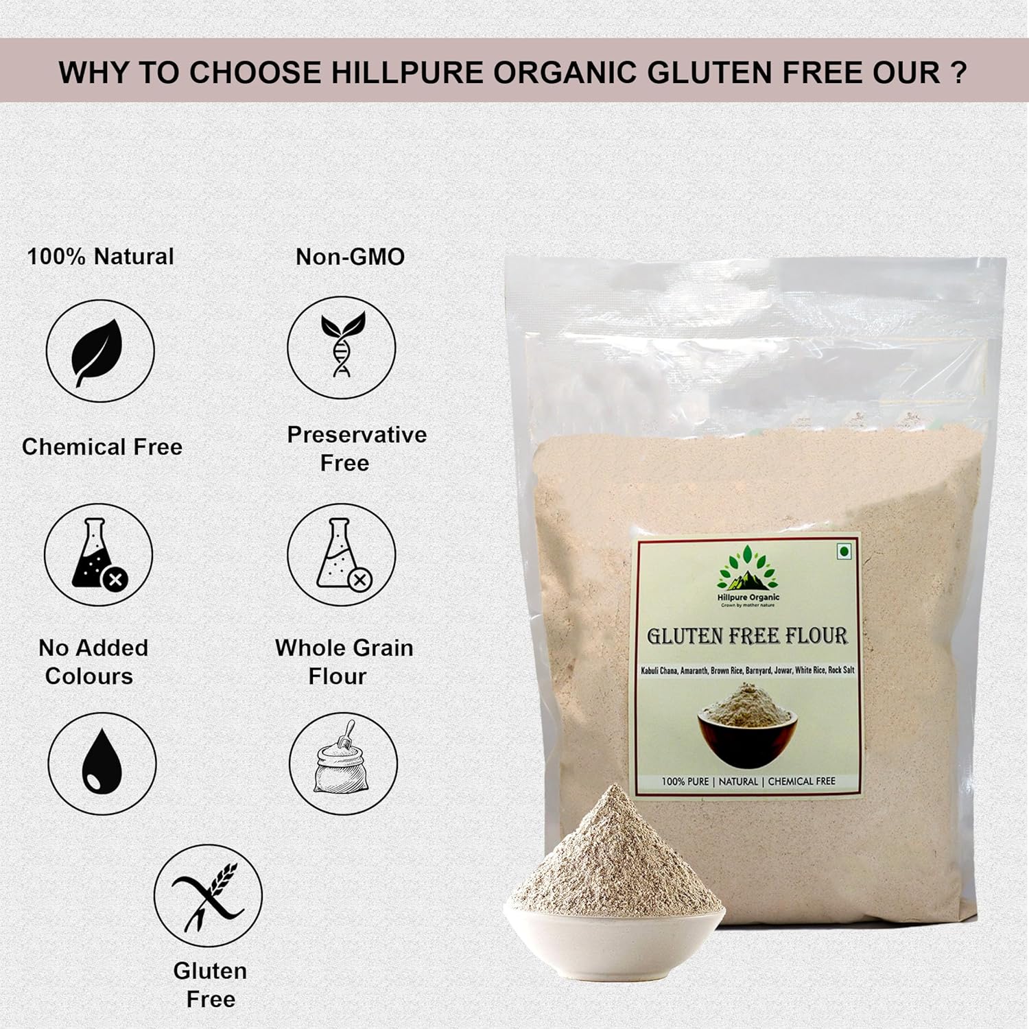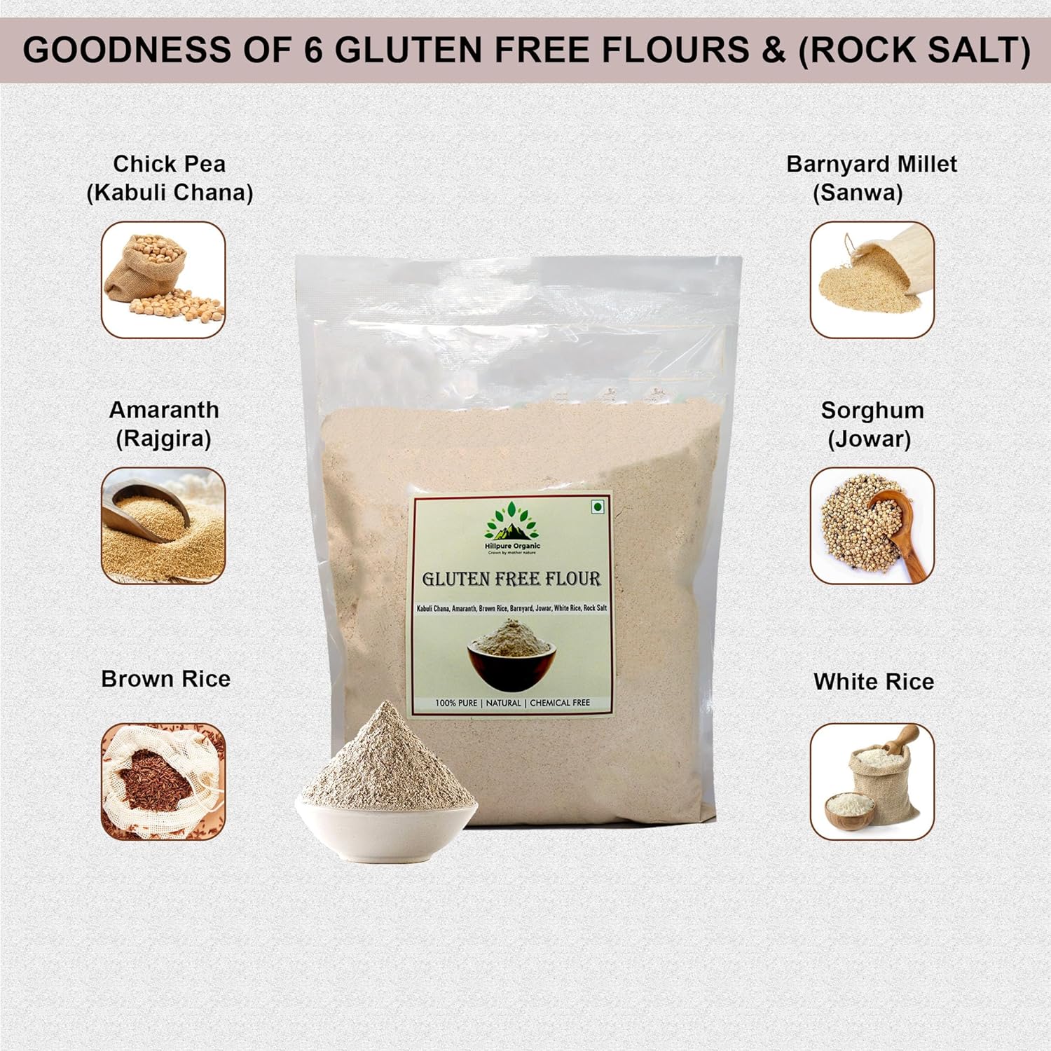 Hillpure Organic Gluten Free Flour is a nutritious mix of 6 gluten-free grains including – Chick Pea (Kabuli Chana), Amaranth (Rajgira), Brown Rice, Banyard Millet (Sanwa), Sorghum (Jowar) and White Rice and rock salt. Each of these grains has its unique nutrient profile which improves the range of nutrient supply, taste and texture of the flour. Presence of rock salt further enhances the taste and the flavour. All grains are grown without the use of chemicals and fertilisers. The flour is Naturally Gluten free, NON-GMO, preservative free, clean, and has no artificial colours and additives to offer the most trustable quality.