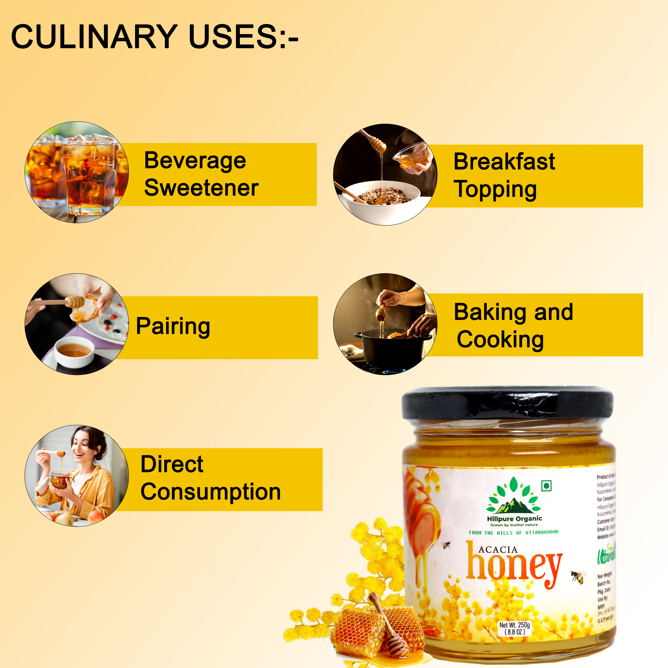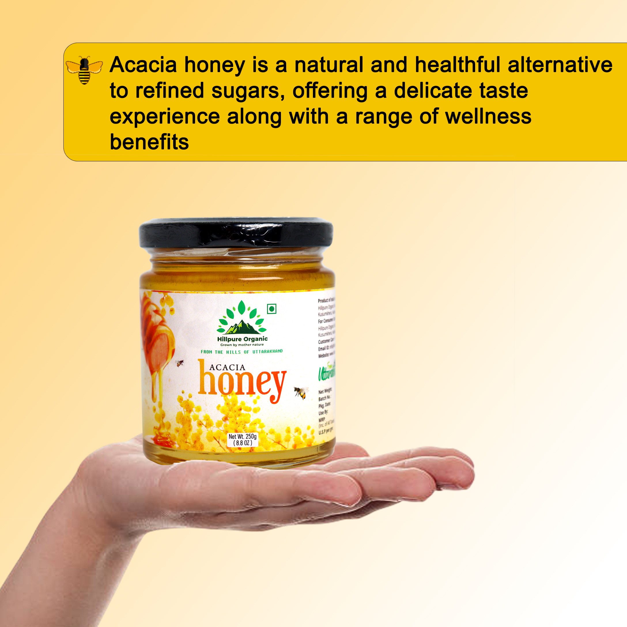 Experience the purity of nature with Natural Acacia Honey, harvested from acacia flower nectar and minimally processed to retain its natural enzymes and nutrients. This premium honey has a light golden color, smooth consistency, and a mildly sweet taste, making it a perfect alternative to refined sugar. Its slow crystallization and easy digestibility make it ideal for everyday use, whether added to beverages, breakfast bowls, or traditional remedies.