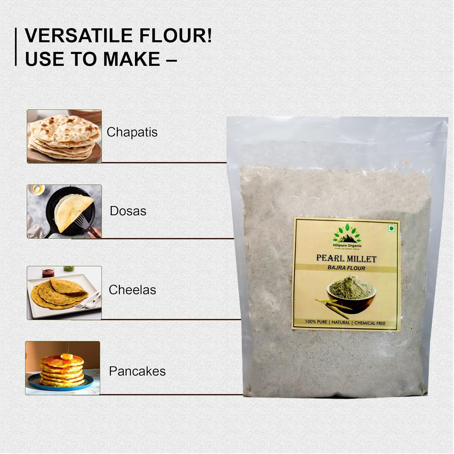 Hillpure Organic Pearl Millet Flour, Bajra Flour, Bajre ke atta, For Weight Loss & Digestive Health (1 kg)