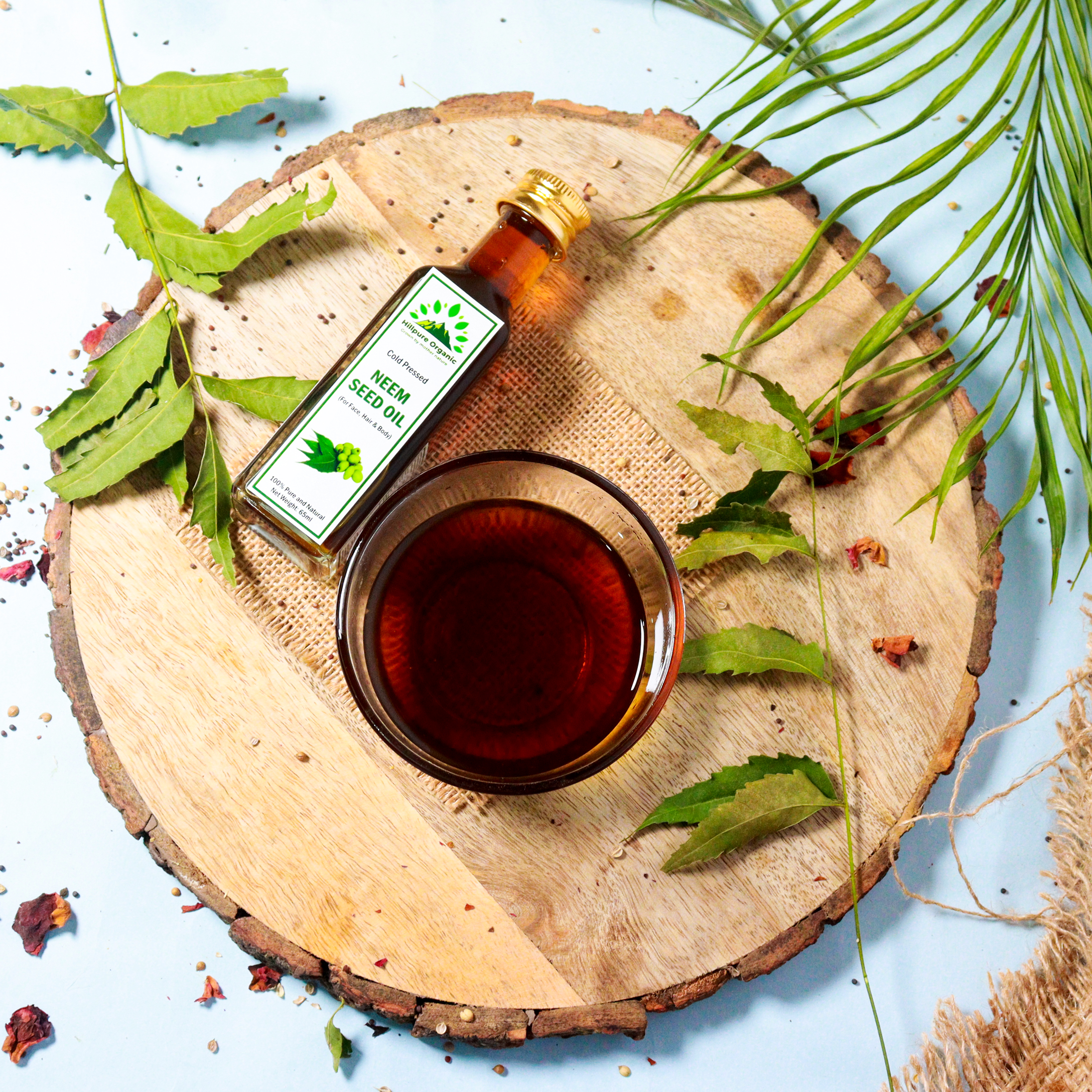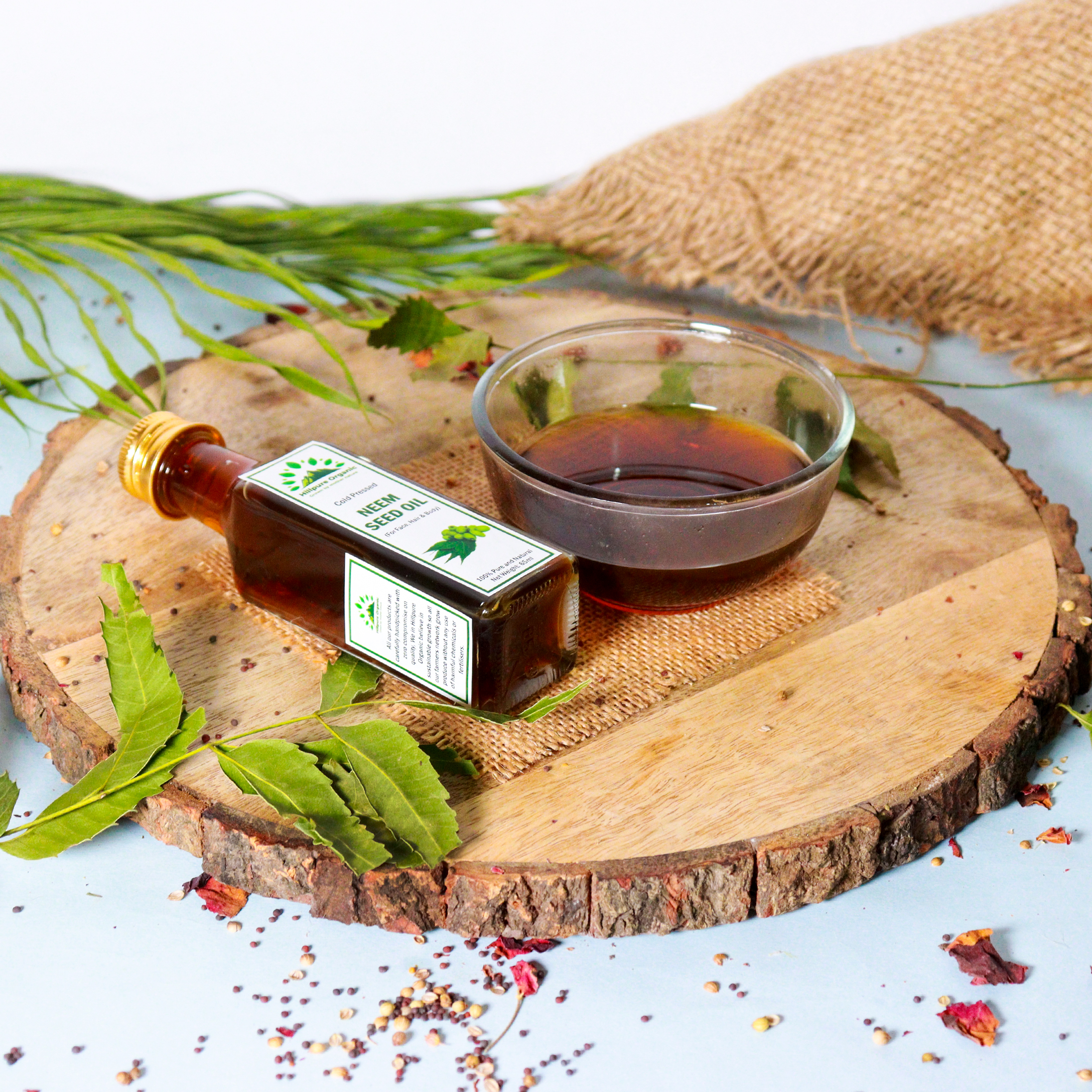 Neem oil is a natural oil derived from the seeds of the neem tree (Azadirachta indica), which is native to India and other parts of Southeast Asia. It has been used for centuries in traditional Indian medicine and Ayurveda. Hillpure Organic neem oil derives from the fruits and seeds of the neem tree. These trees grow mainly in the Indian subcontinent. Neem oil is rich in fatty acids such as palmitic, linoleic, and oleic acids, which help support healthy skin. The oil is, therefore, a popular ingredient in skin care products. The leaf of the plant also provides health benefits. The leaves contain plant compounds called flavonoids and polyphenols, which have antioxidant, anti-inflammatory, and antibacterial properties.
