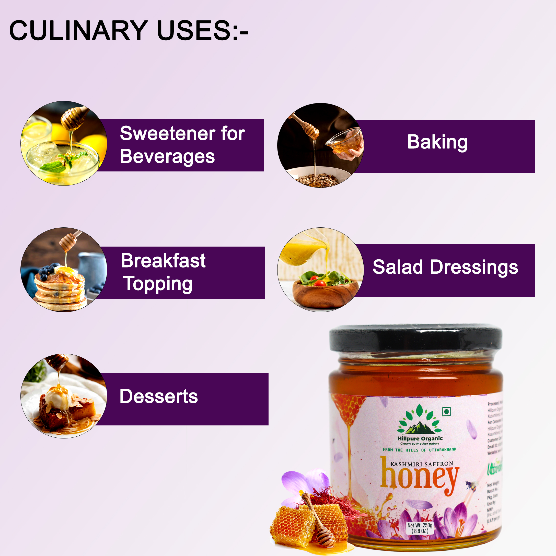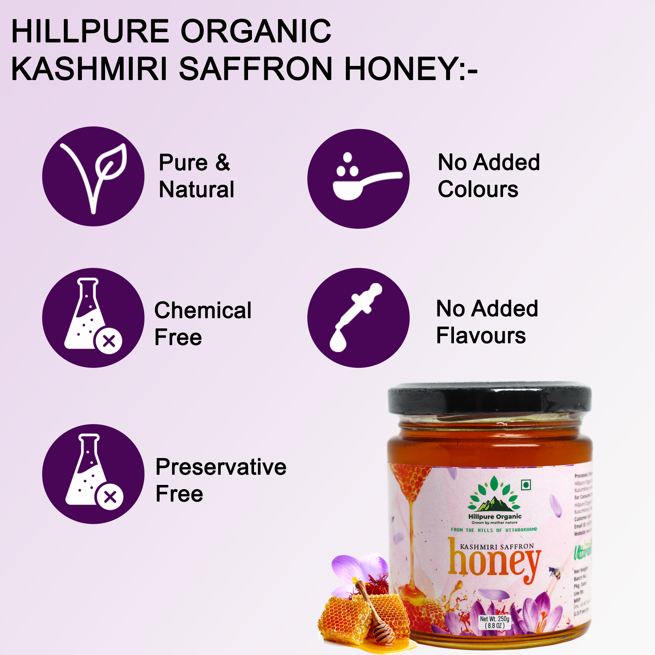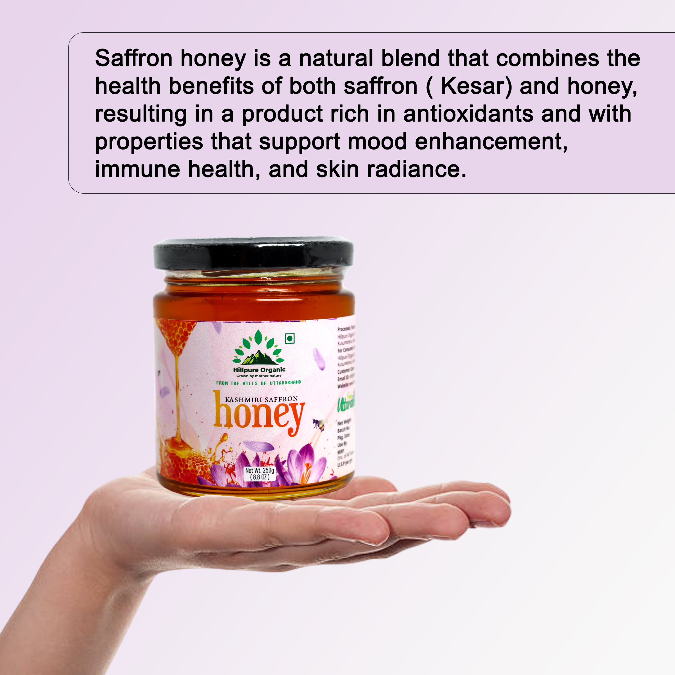Saffron Honey | No Added Sugar | Naturally Aromatic & Premium Honey | 100% Pure & Natural | No Added Sugar | Raw, Unprocessed | Honey from saffron flower region 250 ml